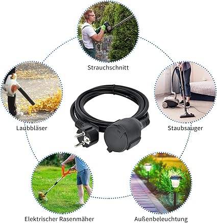 สายไฟต่อพ่วงพีวีซี IP44กลางแจ้ง H05RR-F 10เมตร (1.5mm2 3กรัม) 21A 250โวลต์เครื่องใช้ไฟฟ้าภายในบ้านมาตรฐาน-CN