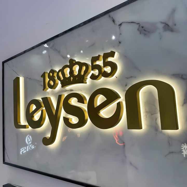 ป้ายอะคริลิคโลหะสีทอง3D สำหรับใช้กลางแจ้งไฟ LED ป้ายตัวอักษรสั่งทำสำหรับร้านตัดผมบริษัทธุรกิจ