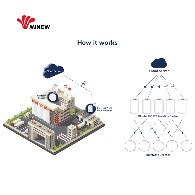 ป้ายระบุตำแหน่งส่วนบุคคลแบบพกพาสำหรับใช้งานภายนอกและภายในอาคาร รองรับ 4G LTE, BLE, บัตรประจำตัว, iBeacon และบลูทูธอัจฉริยะ สำหรับติดตามพนักงาน