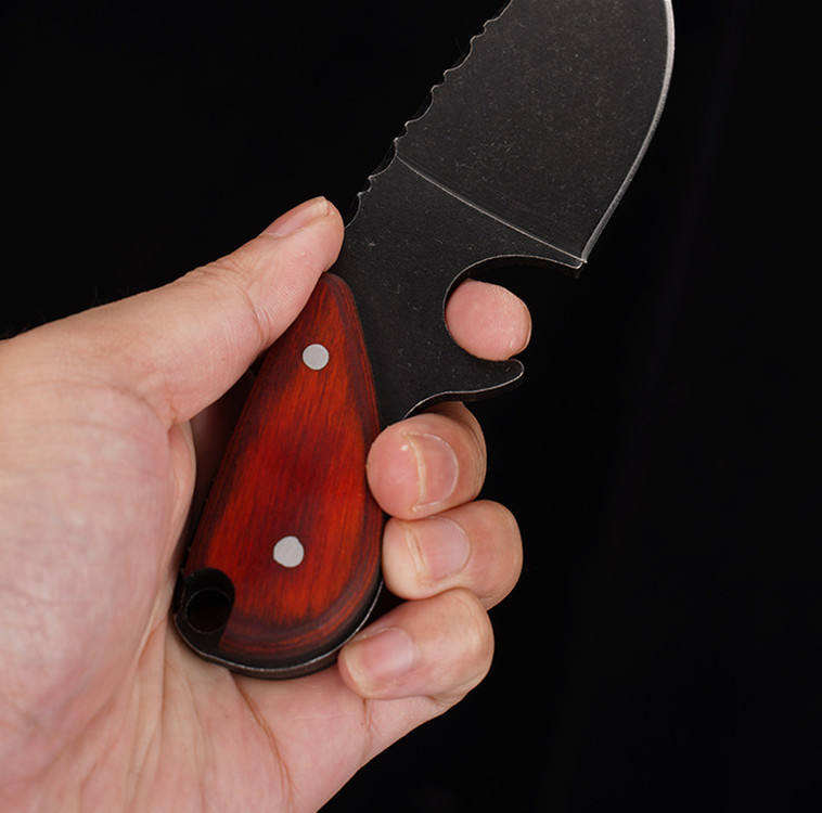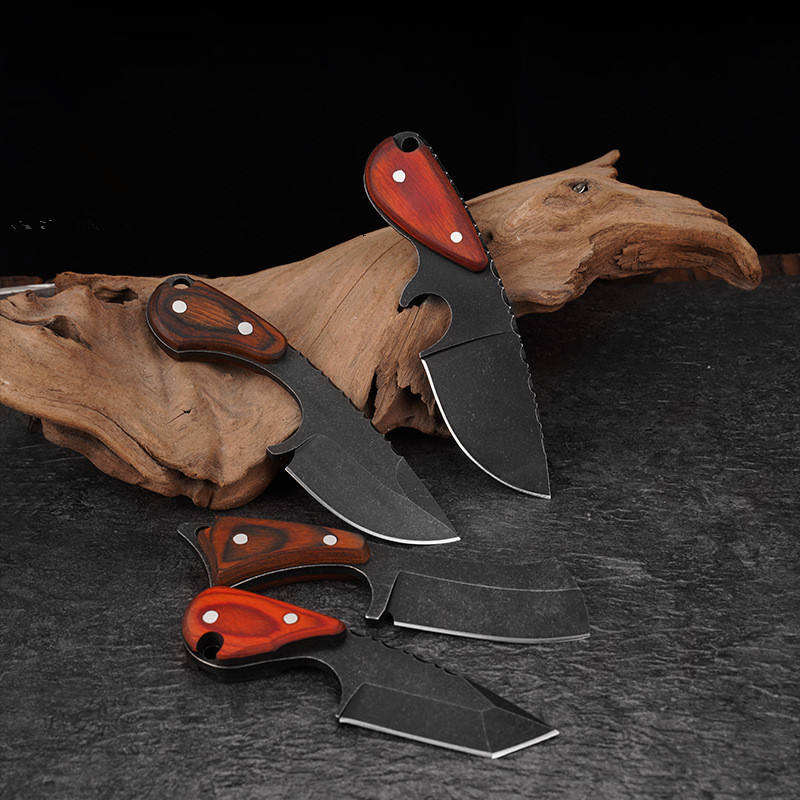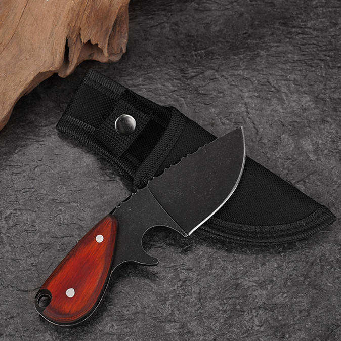 มีดดำน้ำตั้งแคมป์เอาตัวรอดกลางแจ้ง ใบมีดเหล็กกล้าไร้สนิม ความแข็งสูง ตีขึ้นรูปด้วยมือ พร้อมปลอกมีด แบบกดปุ่ม ใบมีดคงที่ OEM พกพาสะดวก