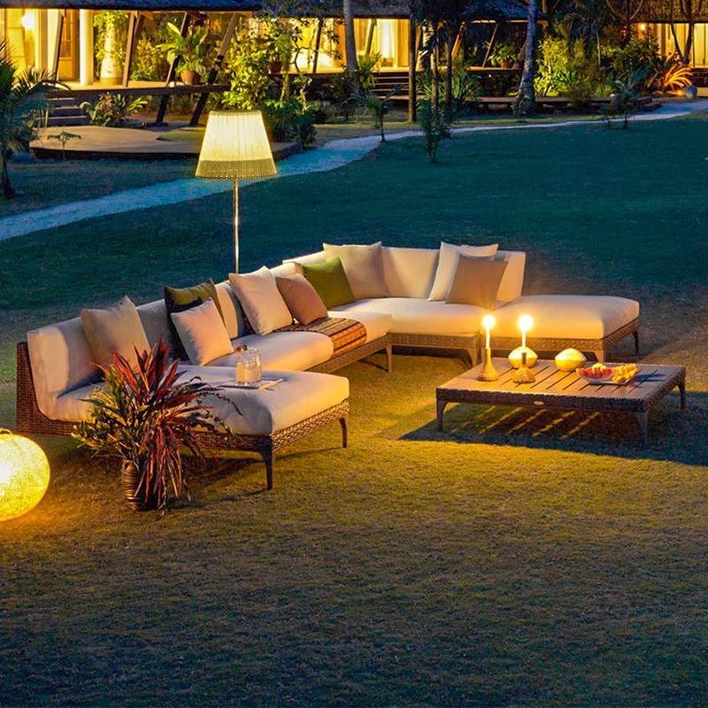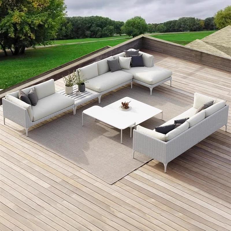 ชุดโซฟาหวายรูปตัวแอลสำหรับกลางแจ้ง โครงอะลูมิเนียม กันน้ำ เหมาะสำหรับสวน วิลล่า ลานบ้าน และระเบียง