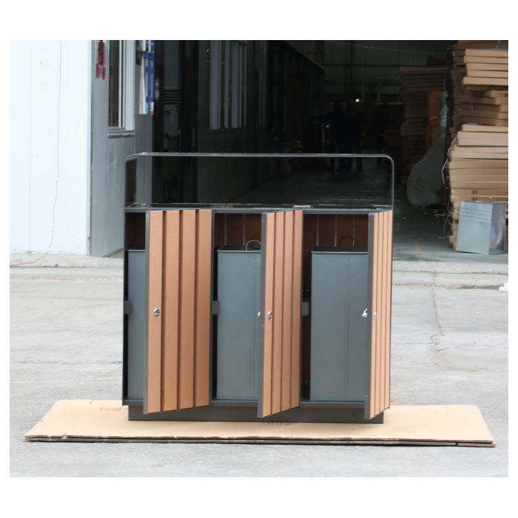 ถังขยะไม้3 in 1สำหรับกลางแจ้ง, ถังขยะรีไซเคิลขนาดใหญ่สำหรับใช้ในงานกลางแจ้งใช้ในถนน