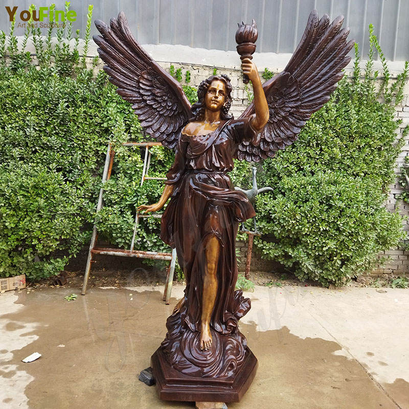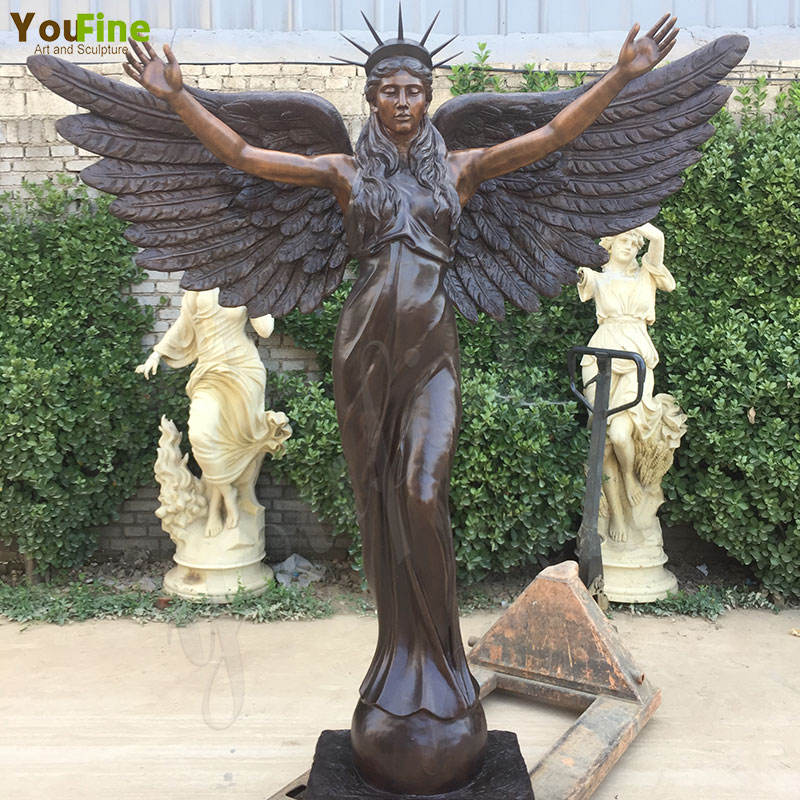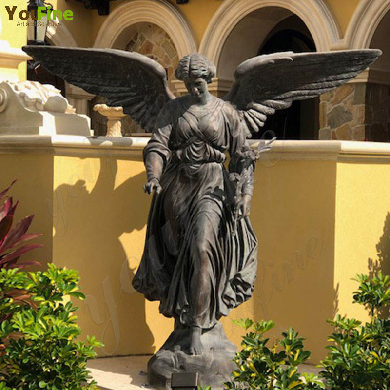 รูปปั้นเทวดาปีกสีบรอนซ์ขนาดใหญ่กลางแจ้งพร้อมนกพิราบสำหรับสวน