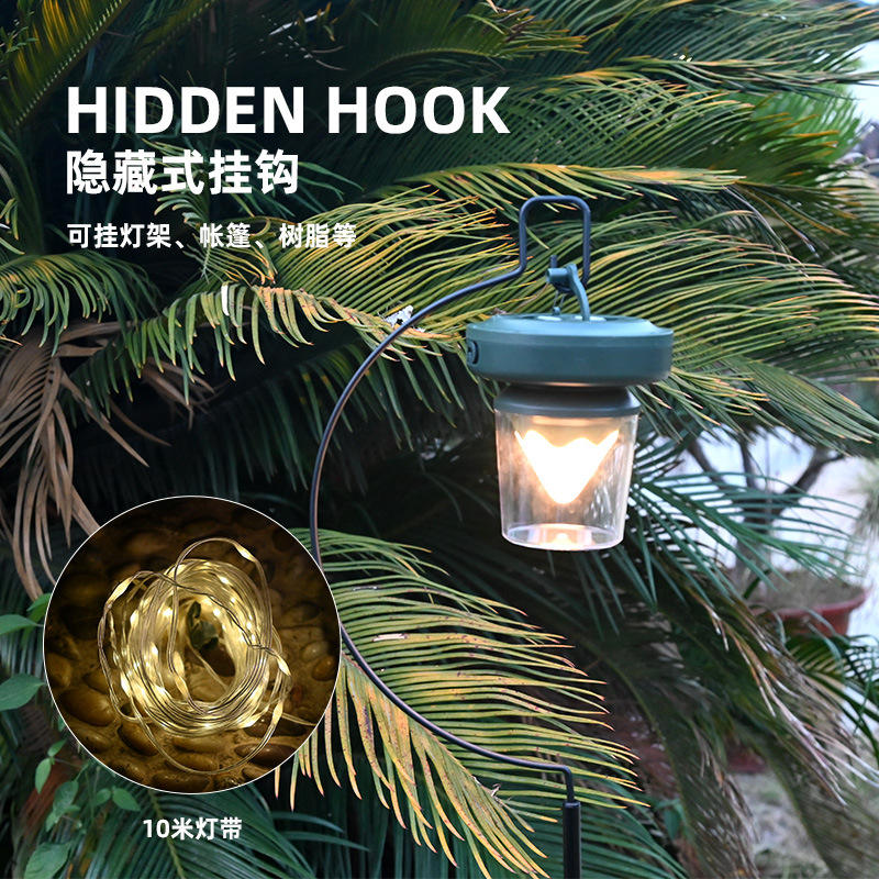 ไฟแคมป์ปิ้ง LED สำหรับใช้งานกลางแจ้ง ความสูง 123 มม. แถบไฟบรรยากาศแบบชาร์จได้ พร้อมสายยาว 10 ม. สำหรับให้แสงสว่างในเต็นท์