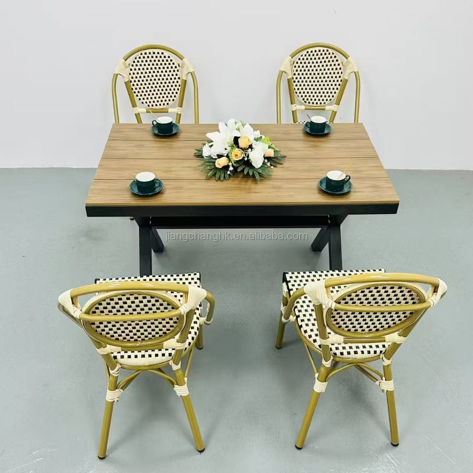 ชุดโต๊ะรับประทานอาหารกลางแจ้งทรงสี่เหลี่ยม ทำจากพลาสติก ไม้ และอลูมิเนียม ทนทาน ทันสมัย รับประกัน 3 ปี คุณภาพสูง เหมาะสำหรับลานบ้าน สวนสาธารณะ และสวน