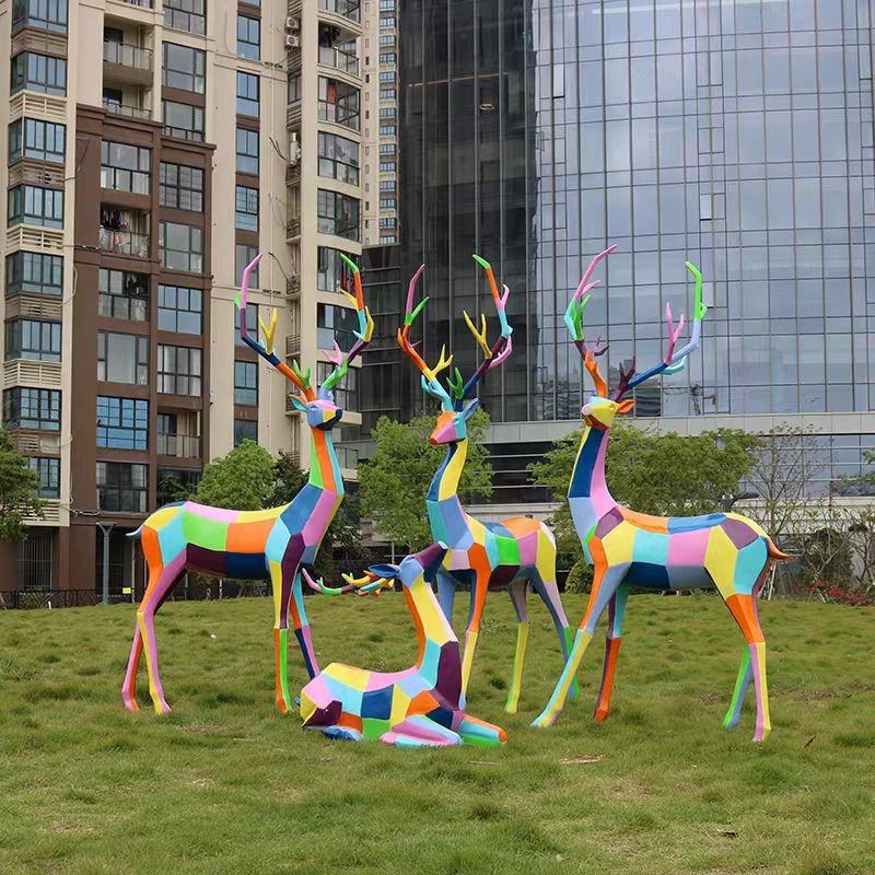 รูปปั้นกวางเรขาคณิตศิลปะสมัยใหม่ขนาดเท่าของตกแต่งภูมิทัศน์ในเมืองทำจากไฟเบอร์กลาสวาดด้วยมือ