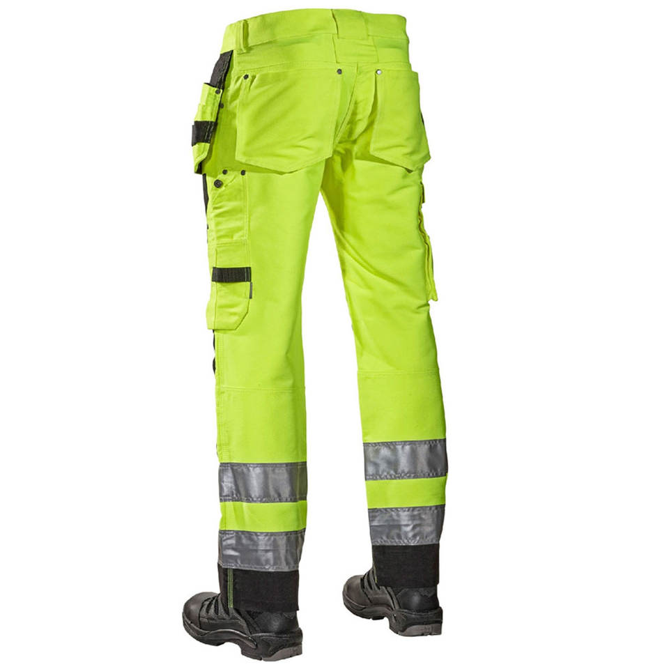 กางเกงเซฟตี้ทางถนนสะท้อนแสงยาวสำหรับผู้ชายกางเกงทำงานปรับแต่งได้สีพื้นสำหรับกลางแจ้ง