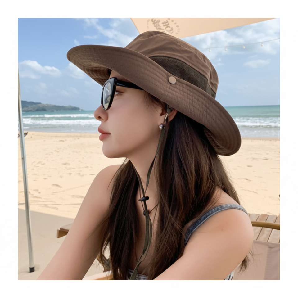 หมวกตกปลาป้องกันรังสียูวีของผู้ชายกลางแจ้งสไตล์คาวบอยตะวันตกฤดูร้อนระบายอากาศตาข่ายสำหรับ M104เดินเขาและปีนเขา
