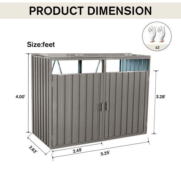 โรงเก็บขยะโลหะกลางแจ้งพร้อมถังขยะ 2 ใบ ทำจากเหล็กชุบสังกะสีสแตนเลส สำหรับจัดเก็บในสวน ทนทานต่อสภาพอากาศ