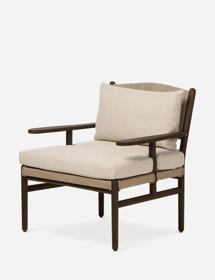 เก้าอี้เท้าแขนกลางแจ้งไม้สักทันสมัยกลางศตวรรษพร้อมพนักพิงทอ