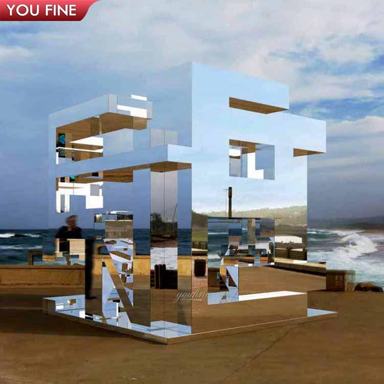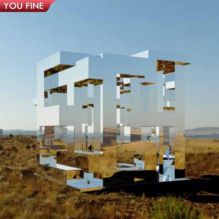 กลางแจ้งกระจกขัดทันสมัยประติมากรรมขนาดใหญ่โลหะกลวงรูบิคสแตนเลสรูปปั้น
