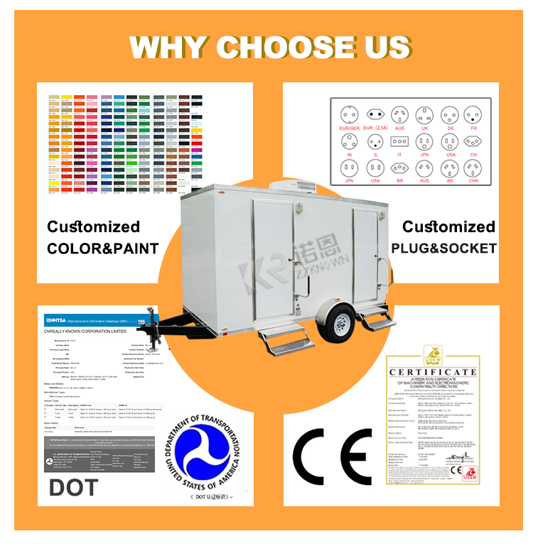 ห้องน้ำเคลื่อนที่กลางแจ้งสุดหรู ห้องน้ำพกพาสาธารณะ ห้องน้ำเคลื่อนที่แบบพ่วงที่ได้มาตรฐาน ADA
