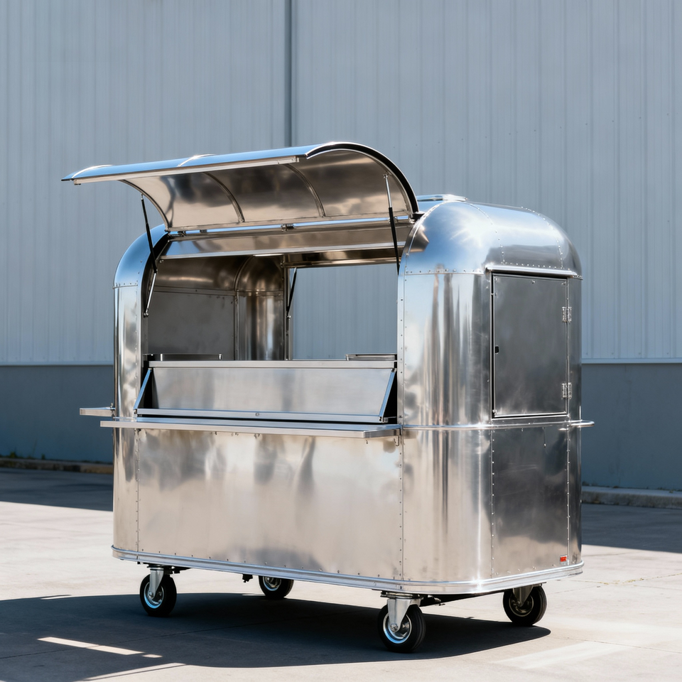 รถพ่วงขายอาหารเคลื่อนที่กลางแจ้ง ทรงสี่เหลี่ยมทันสมัย ทำจากอะลูมิเนียม พร้อมสถานีขายขนมหวาน ร้านกาแฟอเนกประสงค์ รถขายสินค้าแบบบูติก สีชมพูสด