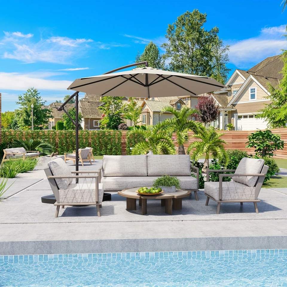 ร่มสนามแบบแขวนหลายสี ทนทานต่อการซีดจาง ผลิตจากผ้ารีไซเคิล ปรับเอียงได้ไม่จำกัด