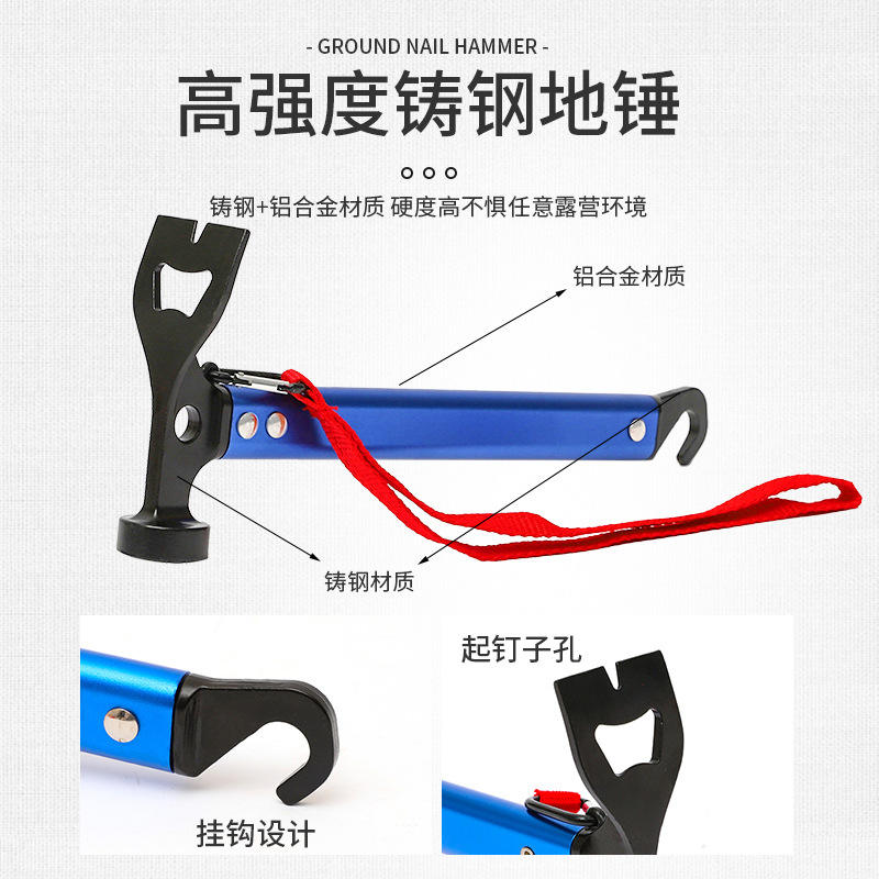 ค้อนอเนกประสงค์สำหรับใช้งานกลางแจ้ง ด้ามจับอะลูมิเนียมอัลลอยด์ ขนาด 29x10 ซม. หัวสิ่วแบน สำหรับตั้งเต็นท์ ผ้าใบกันน้ำ และตอกสมอบก