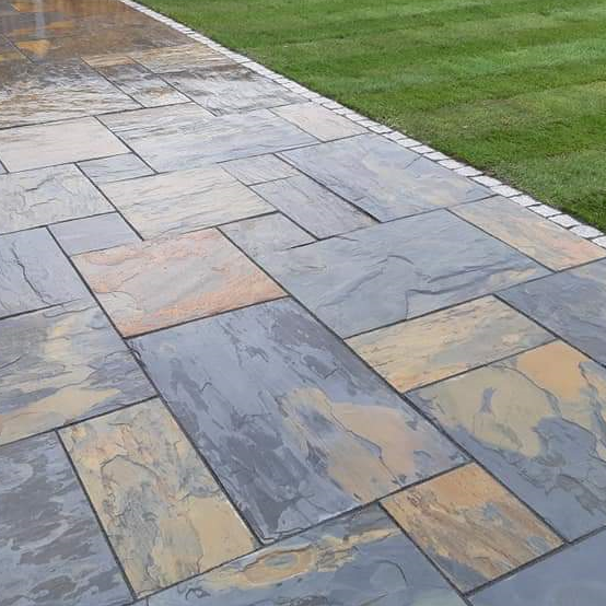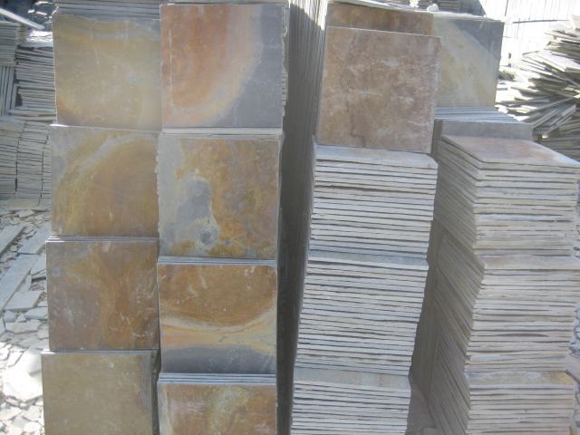 กลางแจ้งธรรมชาติสีเหลืองสนิมตารางกระดานชนวนสวนพื้นปูหินแผ่นบางสำหรับสวนลานสนามหญ้าทางเดินทางเท้า
