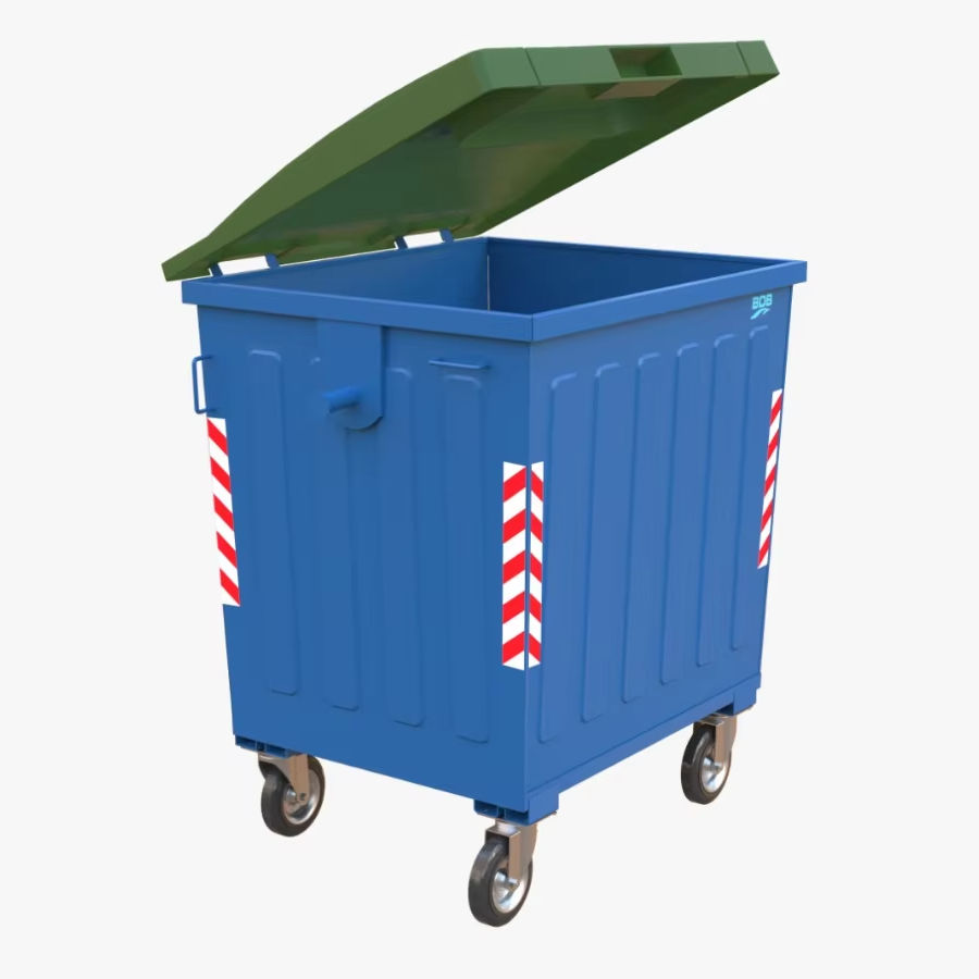 ถังขยะกลางแจ้งแบบใหม่ ชุบกัลวาไนซ์ ขนาด 770 ลิตร 1100 ลิตร ผลิตจากโลหะและพลาสติก HDPE ยี่ห้อ BDB รุ่น BDB.121100-P