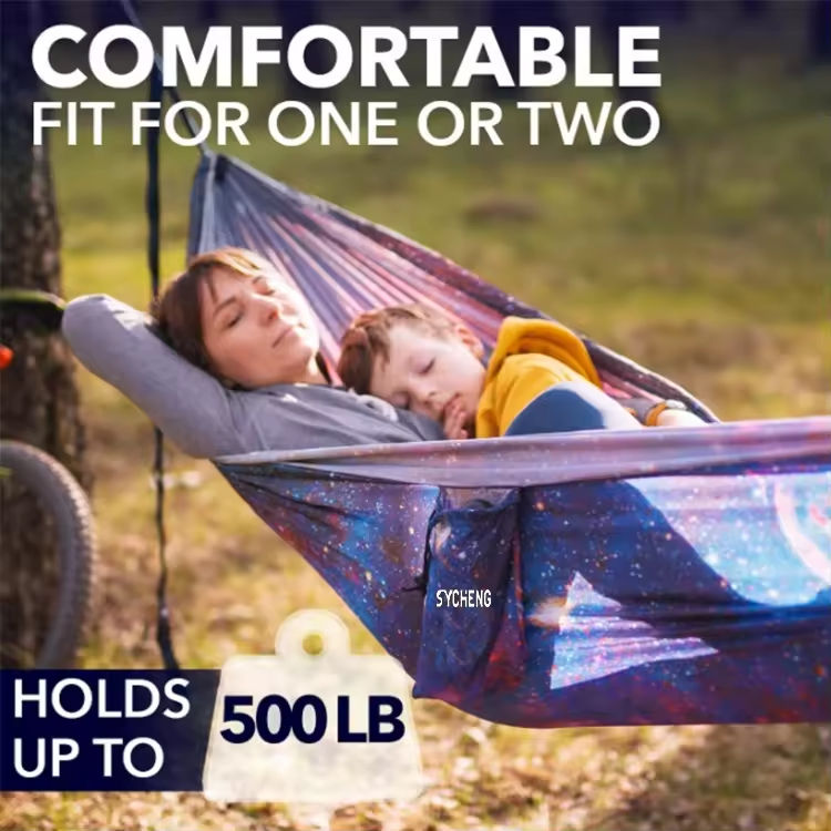 เปลญวนไนลอนสำหรับใช้งานกลางแจ้ง พร้อมมุ้งกันยุง สำหรับตั้งแคมป์-แบบเดี่ยว รับสกรีนโลโก้และสีตามสั่ง สำหรับผู้ใหญ่