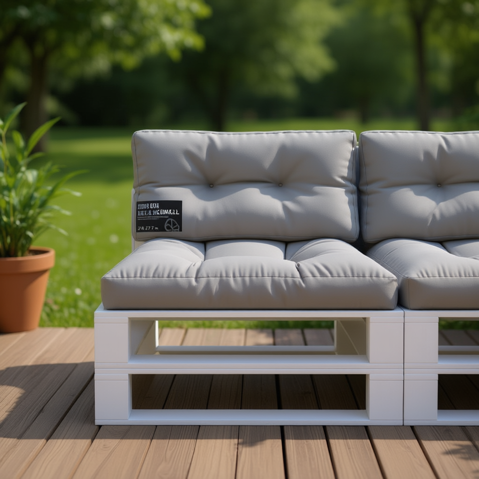 เบาะรองนั่งกลางแจ้งสีเทา ขนาด 27.6 x 27.6 x 4.7 นิ้ว ผลิตจากโพลีเอสเตอร์ 100% ดีไซน์ทรงสี่เหลี่ยม นั่งสบาย