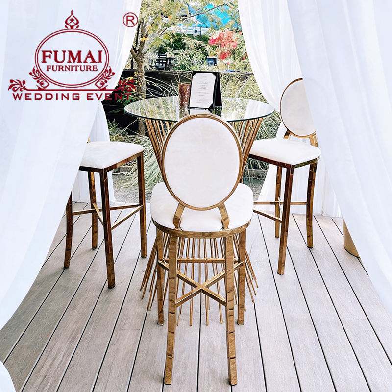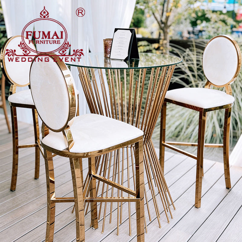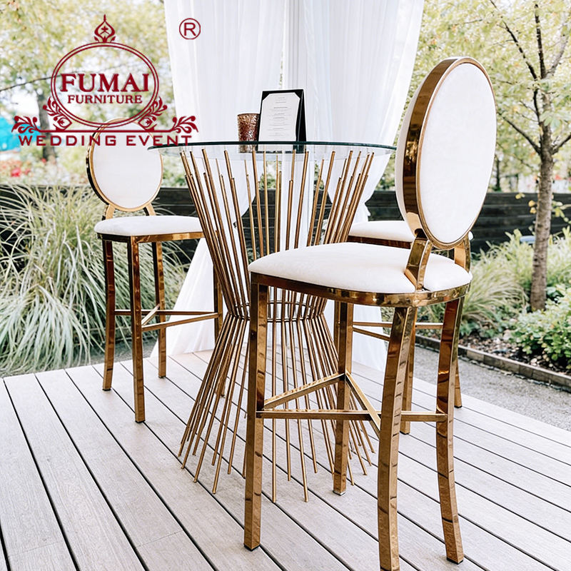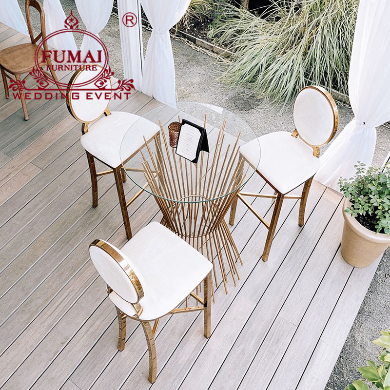 เฟอร์นิเจอร์สำหรับงานปาร์ตี้กลางแจ้งทันสมัย โต๊ะทรงกลมหน้ากระจก ขาเหล็กสแตนเลสสูงระดับบาร์ สำหรับใช้ในบ้าน บาร์ และโรงแรม รุ่น Hkfumai BT-603