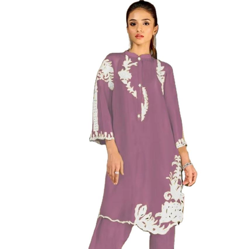 ชุดเดรสสองชิ้นงานปักลายสไตล์วัฒนธรรมตะวันตกสำหรับงานปาร์ตี้กลางแจ้งและสำนักงาน