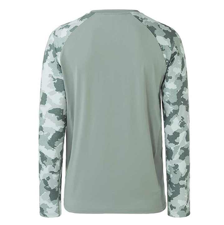 เสื้อสำหรับผู้ชายเสื้อตกปลาแขนยาวผ้าคอตตอนโพลีเอสเตอร์สำหรับใส่กลางแจ้งป้องกันแสงแดด