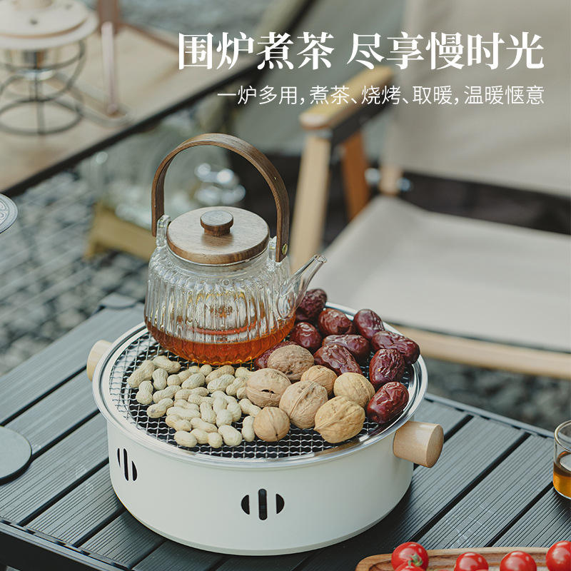 เตาบาร์บีคิวแบบพกพาสำหรับใช้งานกลางแจ้ง ทำจากสแตนเลส พร้อมด้ามจับไม้ สำหรับทำอาหารกลางแจ้งและชงชา