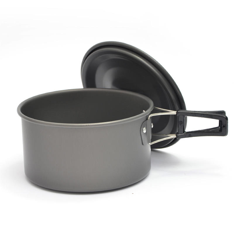 หม้อเดี่ยวพกพาสำหรับตั้งแคมป์กลางแจ้ง ขนาดกลาง เคลือบสารกันติด ทำจากอะลูมิเนียมแข็ง สำหรับทำข้าวและก๋วยเตี๋ยว