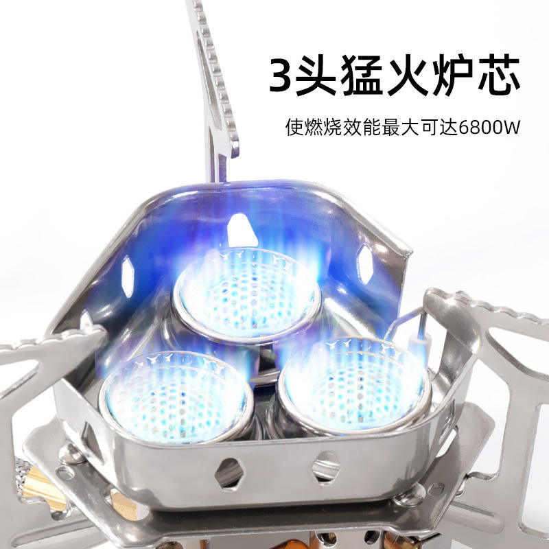 เตาแก๊สพกพาแบบพับได้สำหรับตั้งแคมป์กลางแจ้ง สำหรับ 1-2 คน ป้องกันลม พร้อมระบบจุดไฟ สีเงิน