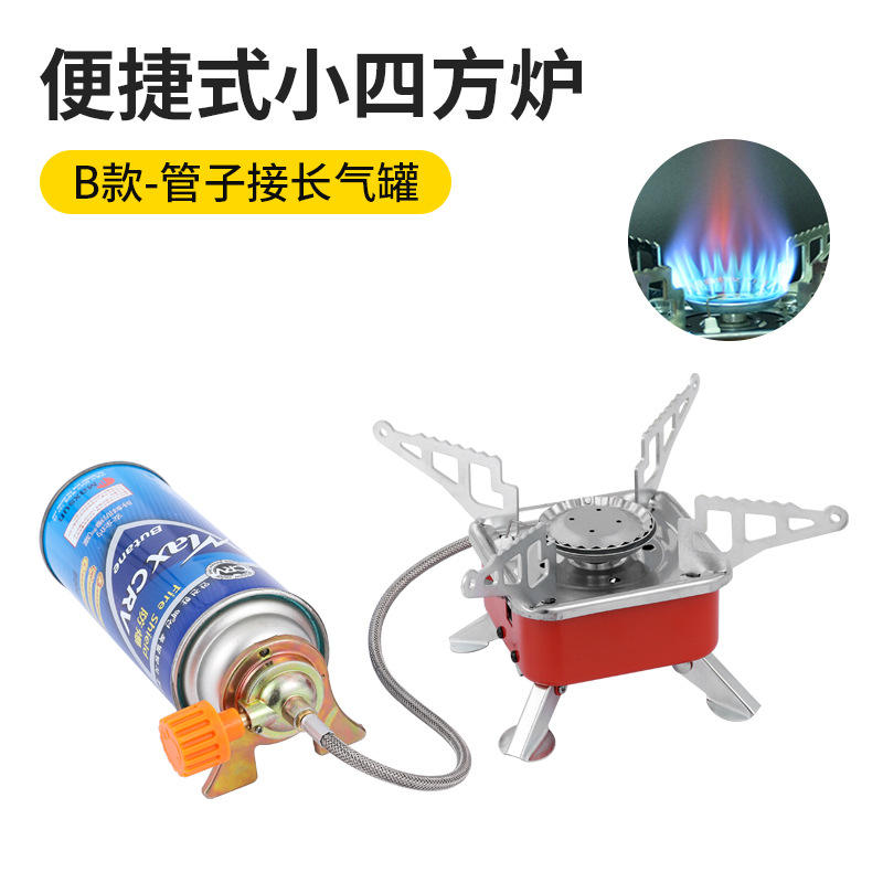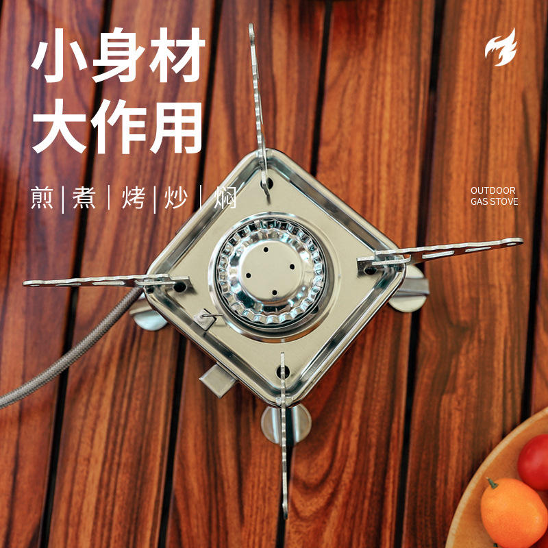 เตาแก๊สพกพาแบบพับได้ขนาดเล็ก K-202 สีเงิน น้ำหนักเบา สำหรับตั้งแคมป์ ปิกนิก และเดินทาง พร้อมอุปกรณ์จุดไฟ