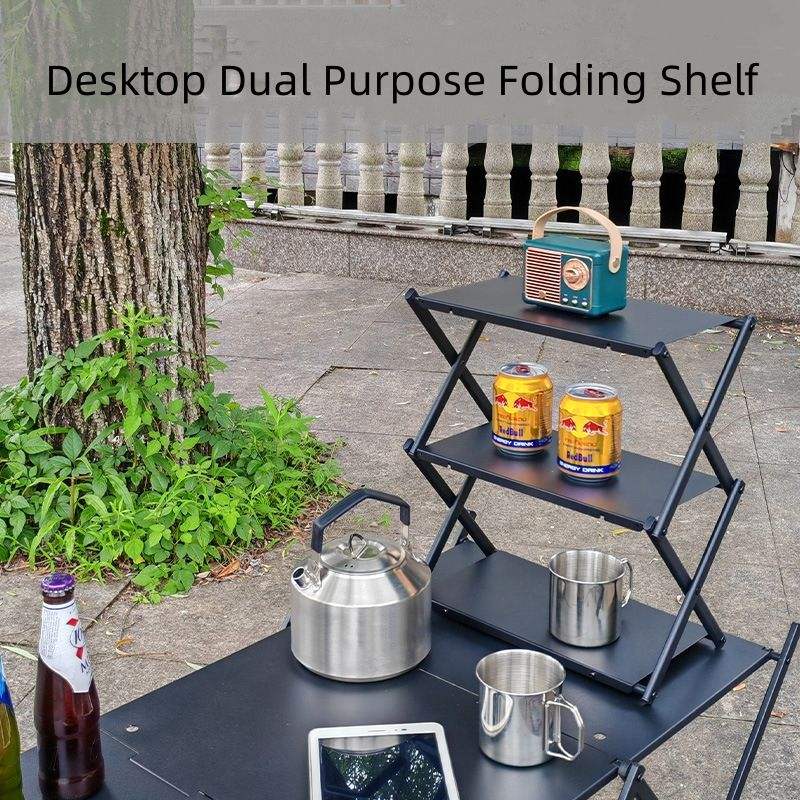 โต๊ะอาหารอลูมิเนียมพับได้แบบพกพาสำหรับกลางแจ้ง 3 ชั้น ขนาดเล็ก เหมาะสำหรับตั้งแคมป์