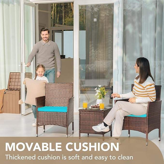 ชุดเฟอร์นิเจอร์หวายกลางแจ้ง3ชิ้นเก้าอี้และโต๊ะสำหรับระเบียงลานบ้าน