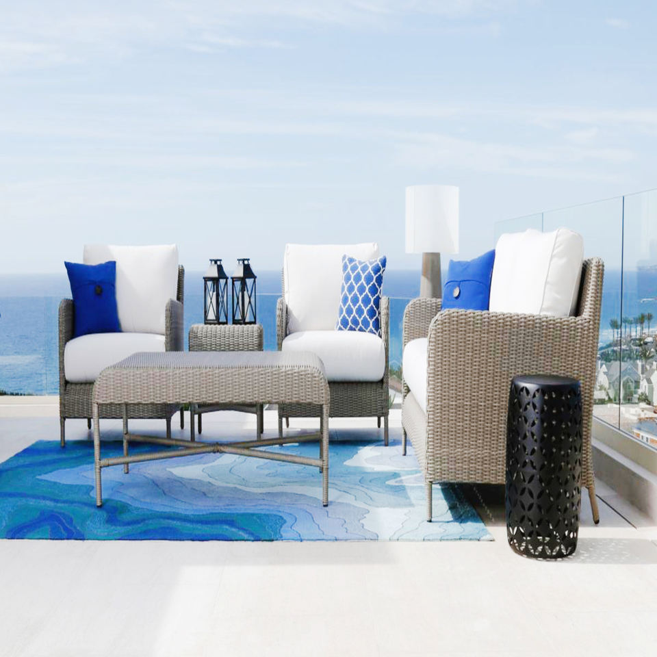 ชุดเฟอร์นิเจอร์หวายกลางแจ้งสำหรับสวนลานโรงแรมสวนสาธารณะบ้านไร่-รวม1 2-Seater โซฟา2โซฟาเดี่ยว2โต๊ะ