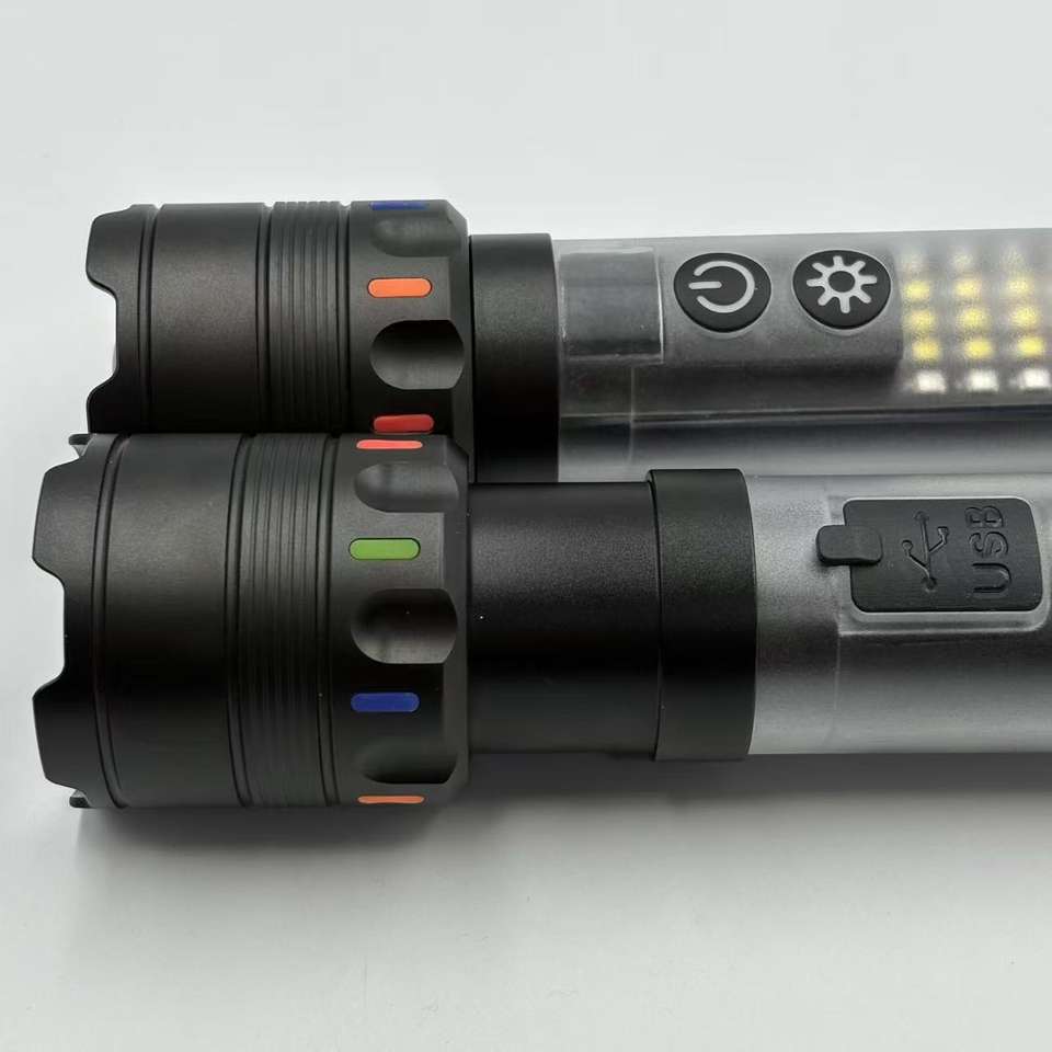 ไฟฉาย LED แบบชาร์จไฟกลางแจ้งแบบพกพาพลังงานสูงสำหรับการตั้งแคมป์ที่บ้านฉุกเฉินขี่กลางคืน