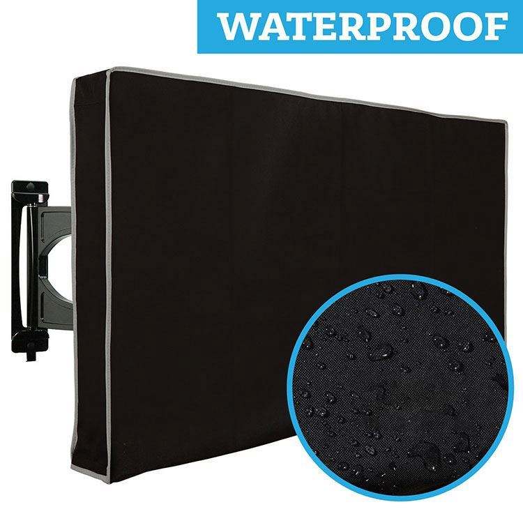 ที่คลุมทีวีรีโมทกลางแจ้ง40 "42" 43 "ตัวป้องกันทนต่อสภาพอากาศสากลสำหรับการตกแต่งทีวีจอแบนที่ติดตั้งทีวีส่วนใหญ่และขาตั้งสีดำ