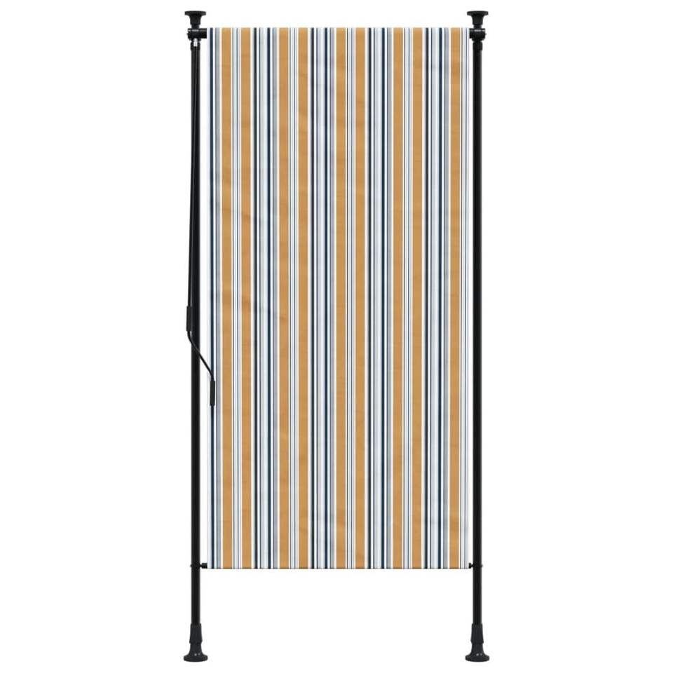 ม่านม้วนกลางแจ้ง ผ้าสีเหลืองและสีขาว พร้อมโครงเหล็ก สำหรับบังแดดและบานประตูหน้าต่าง