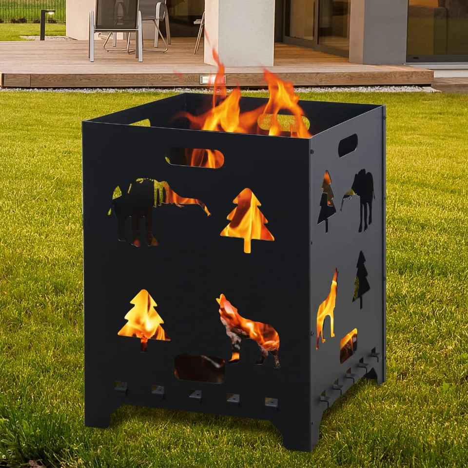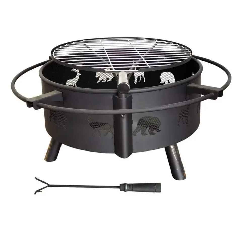 เตาผิงไม้กลางแจ้งทรงกลมพร้อมตะแกรงกันประกายไฟ เตาไฟพกพาสำหรับสวน เตาทำความร้อนลานบ้าน เตาไฟโลหะสำหรับตั้งแคมป์