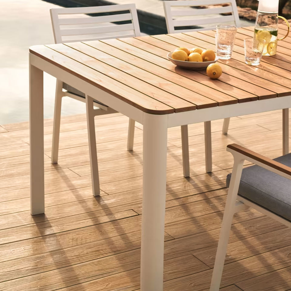 ชื่อผลิตภัณฑ์:ชุดรับประทานอาหารกลางแจ้งอลูมิเนียมและไม้สักพร้อมเก้าอี้สไตล์ที่ดีที่สุด-Jia