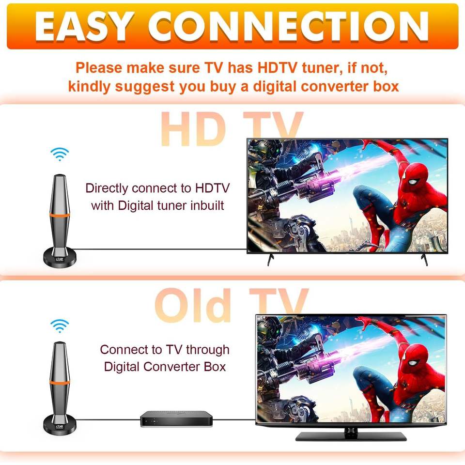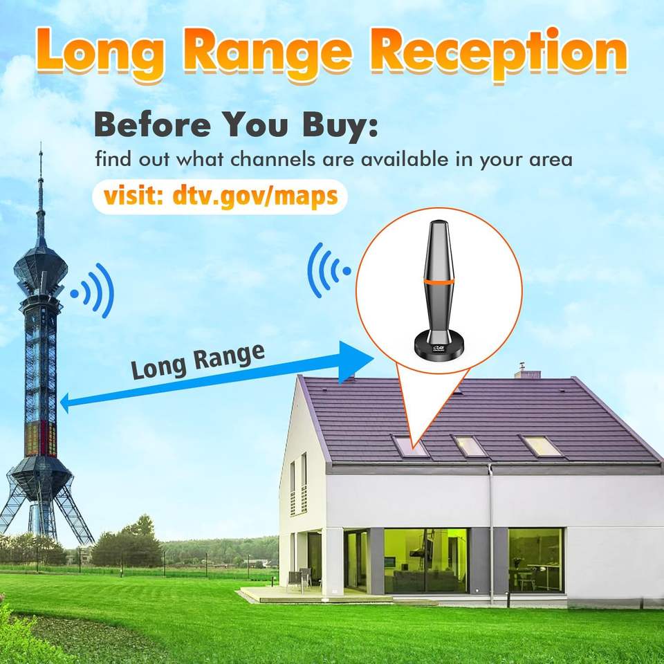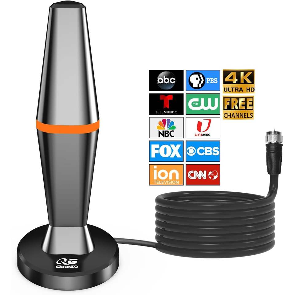 เสาอากาศทีวีอัจฉริยะสำหรับภายนอกอาคาร ฐานแม่เหล็กแข็งแรง รับสัญญาณระยะไกล เสาอากาศดิจิตอลกำลังขยายสูง สัญญาณทีวีท้องถิ่น สายเคเบิลพลาสติกยาว 3 เมตร