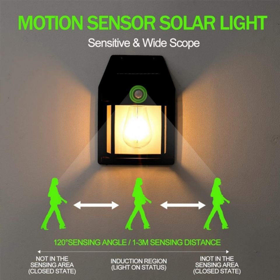 Outdoor Solar Patio Wall Light Motion Sensor IP65 LED Lamp Water-Resistant Battery Included for Gardens Yards Barns Garages