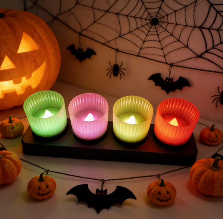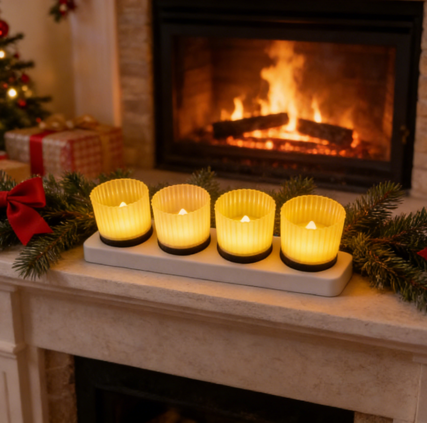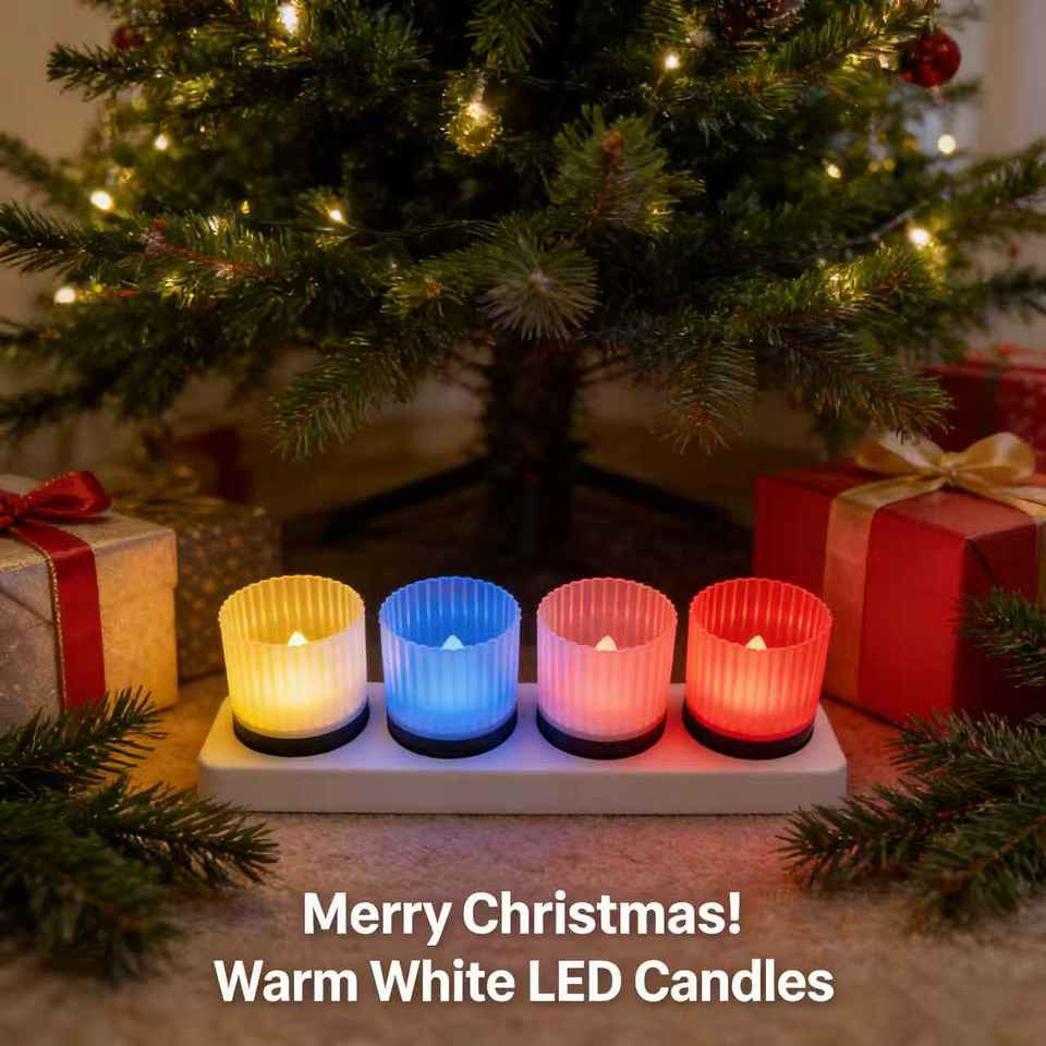 เทียนพลังงานแสงอาทิตย์สำหรับภายนอกอาคาร เทียนทีไลท์แบบใช้ซ้ำได้ ตั้งแต่พลบค่ำถึงรุ่งเช้า แสงสีขาวอบอุ่น สำหรับตกแต่งโคมไฟ แพ็ค 4 ชิ้น