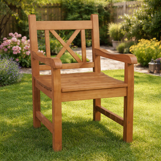 เก้าอี้ไม้สักสำหรับสวน ดีไซน์เรียบง่าย พนักพิงไขว้ คุณภาพสูง เหมาะสำหรับลานบ้าน ราคาสุดคุ้ม