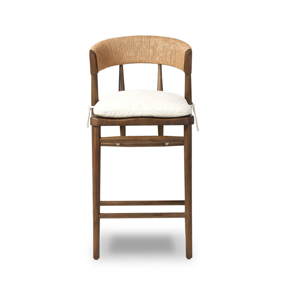 เก้าอี้บาร์เฟอร์นิเจอร์กลางแจ้งรุ่นใหม่ ไม้สักธรรมชาติ ผสมผสานเชือกและเบาะรองนั่ง คุณภาพดีที่สุด - ดาร์รา