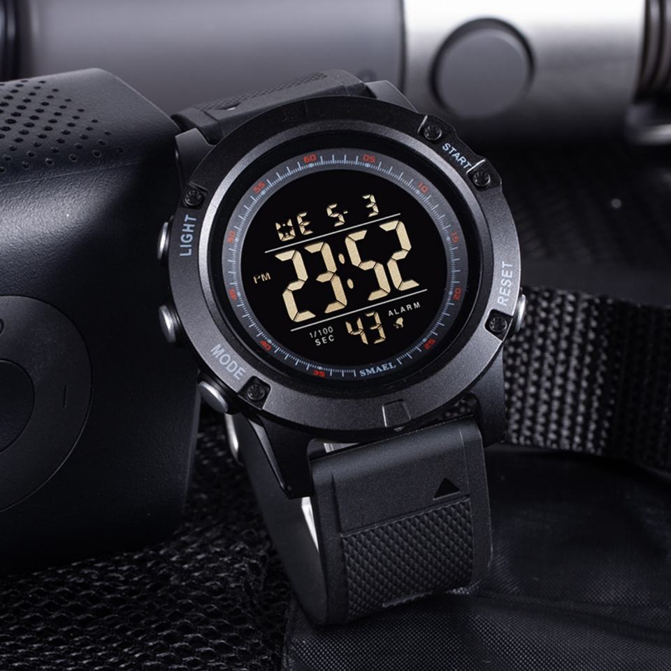นาฬิกาข้อมือกีฬากลางแจ้ง SMAEL 1902 นาฬิกาอิเล็กทรอนิกส์สีสันสดใสสำหรับผู้ชาย นาฬิกากีฬากันน้ำ
