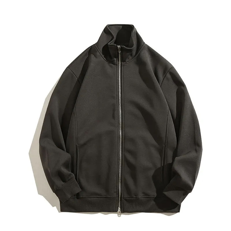 เสื้อแจ็คเก็ตผ้าฝ้ายปักลายสไตล์สปอร์ตสำหรับฤดูใบไม้ร่วง แบบซิปเต็มตัว สกรีนโลโก้ได้ คอตั้งสองด้าน ซิปแบบฮู้ด
