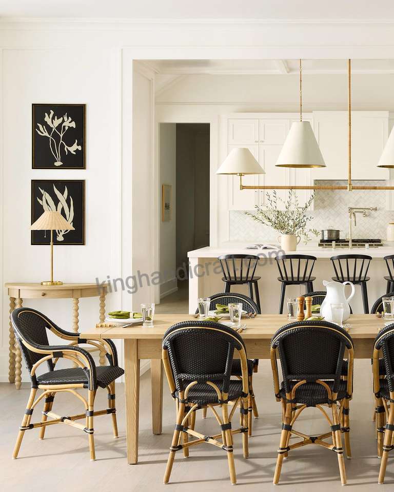 เก้าอี้ร้านอาหารฝรั่งเศสแบบวางซ้อนได้กลางแจ้งที่นั่งหวายทอทนต่อสภาพอากาศปลอดภัยสำหรับคาเฟ่สวนใช้สำหรับห้องนั่งเล่นห้องครัว