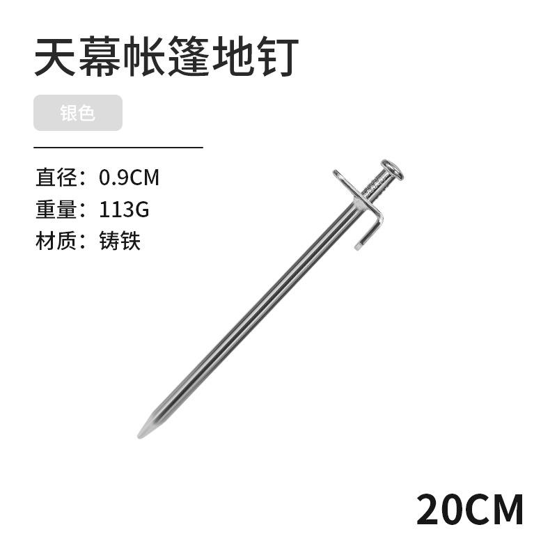 สมอบกเหล็กสำหรับเต็นท์กลางแจ้ง ขนาด 20 ซม. สีเงิน สำหรับใช้กับผ้าใบกันน้ำ ชายหาด เต็นท์หิมะ