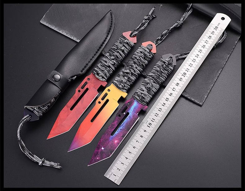 มีดตรงสำหรับใช้งานกลางแจ้ง พกพาสะดวก เหมาะสำหรับการล่าสัตว์ในป่า มีดเอาตัวรอดพร้อมเชือก