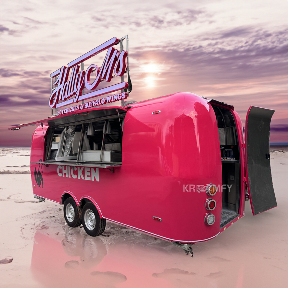 รถขายอาหารเคลื่อนที่แบบสแตนเลสพร้อมครัวครบชุดสำหรับร้านกาแฟกลางแจ้ง