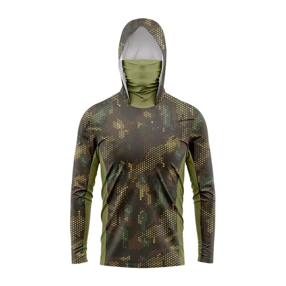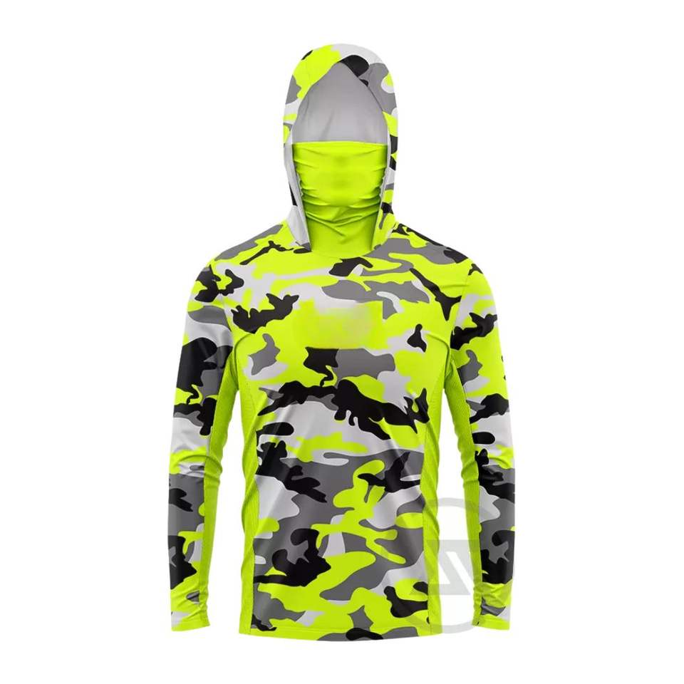 เสื้อฮู้ดพิมพ์ลายสำหรับตกปลากลางแจ้งแขนยาวระบายอากาศได้ดีแห้งเร็ว